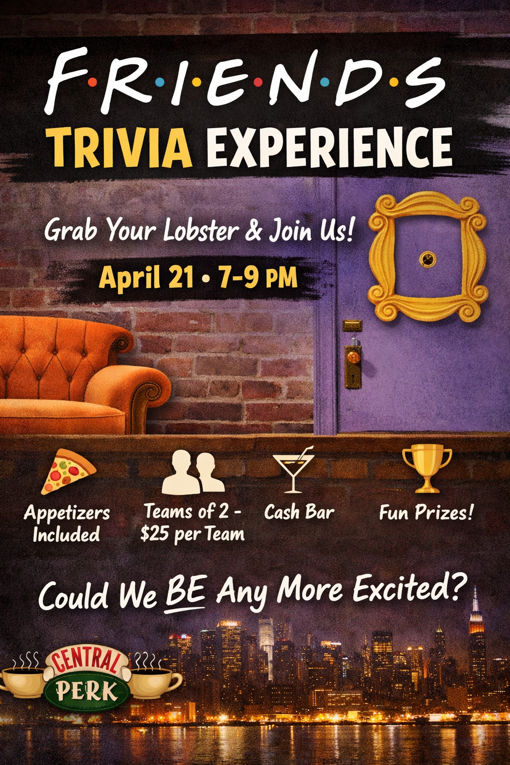 Grab your lobster 🦞 (yes, your friend… or your friend friend 😉) and join us for a Friends Trivia Experience!
